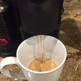 Step One: Brew your espresso (can do 1-2 pods) and froth your milk (run it twice for thicker milk)