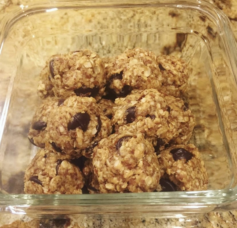 1 cup Kodiak mix, 1/2 cut oats, 1 cup peanut butter, 1/2 cup honey, 1/2 cup mini chocolate chips